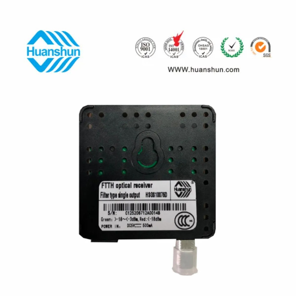 環順的HSGS10076D光接收機是專為CATV網絡的FTTH 應用而設計的入戶濾波型光接收機。具有結構小巧緊湊、式樣美觀、 應用方便等 特點,在高達1000Mhz的帶寬下能夠提供穩定的輸出電平和優異的性能指標,具有極寬的光功率工作范圍。