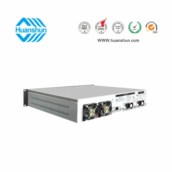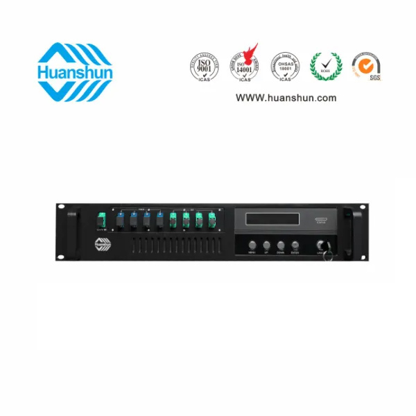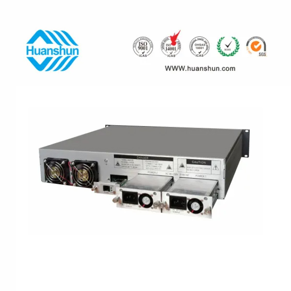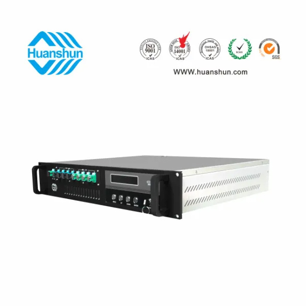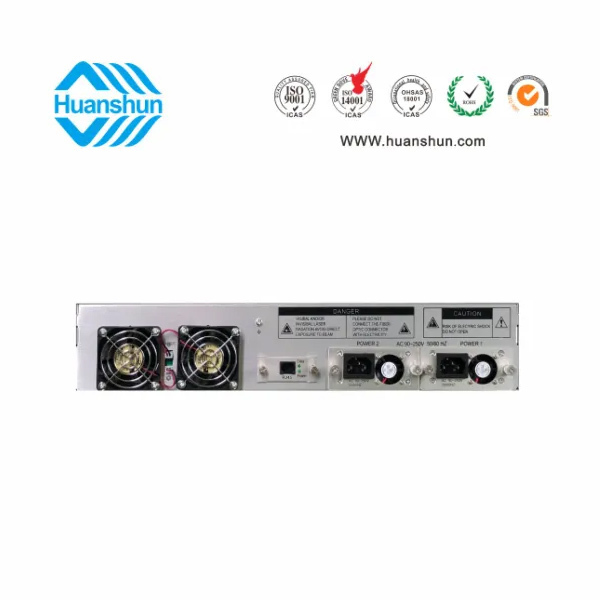 19 " 2U標(biāo)準(zhǔn)機(jī)箱,-5 ~ +10 d Bm輸入,4路標(biāo)稱規(guī)格(16、17、18、19、20、21、22、23dBm)放大輸出,并支持下調(diào)-2dB,安全連接模式,NF ≤ 5dB(0dBm時);內(nèi)置FWDM合波器,插播損耗 ≤ 1dB;雙模塊熱插撥電源,AC90 ~ 255V或DC-48V供電,RJ45標(biāo)準(zhǔn)網(wǎng)管(支持SNMP、WEB)