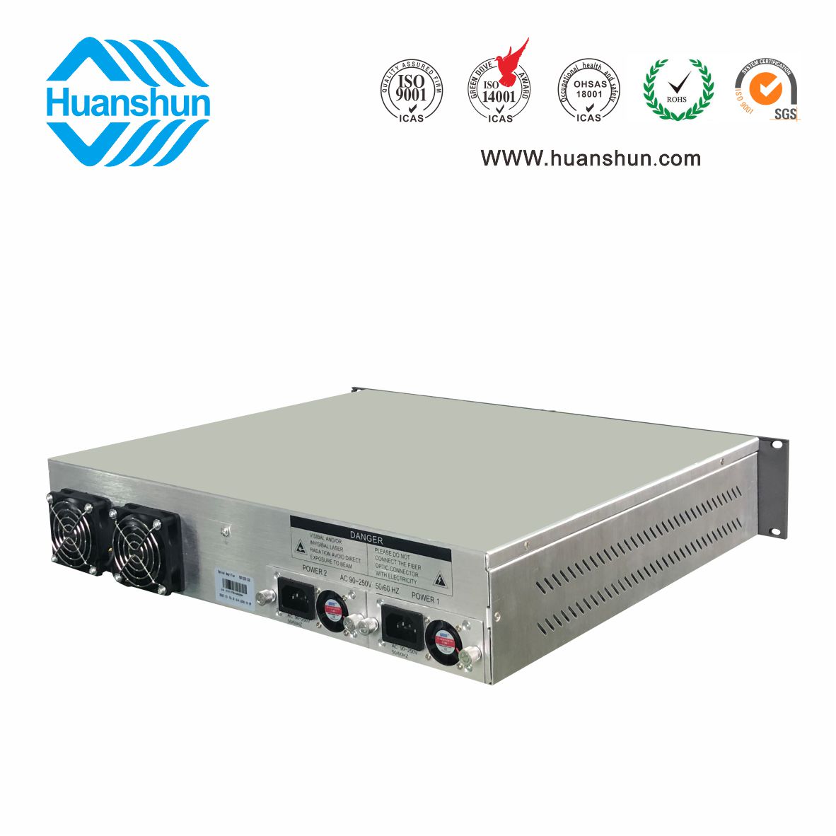 大功率光纖放大器EYDFA | YGF1516-16C | 19 " 2U/3U標(biāo)準(zhǔn)機(jī)箱,-5 ~ +10 d Bm輸入,16路標(biāo)稱規(guī)格(16、17、18、19、20、21、22、23dBm)放大輸出,并支持下調(diào)-2dB,安全連接模式,NF ≤ 5dB(0dBm時(shí));內(nèi)置FWDM合波器,插播損耗 ≤ 1dB;雙模塊熱插撥電源,AC90 ~ 255V或DC-48V供電,RJ45標(biāo)準(zhǔn)網(wǎng)管(支持SNMP、WEB) |
