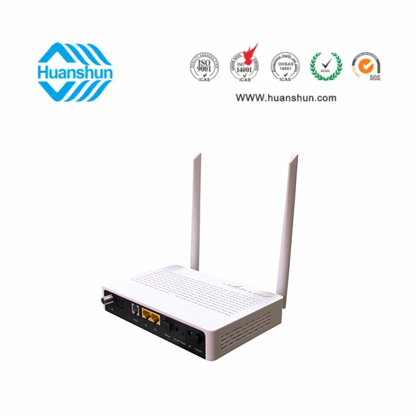 G/EPON ONU, PON端口接入,1GE+1FE網絡接口,1個POTS 2*2 2.4G WIFI(外置天線300米),CATV1545~1565nm -5~-15dBm inport/RFMD76dBuv恒定輸出,通過內置WDM-PON xPON1310/1490nm1~4dBmTX,-28dBmRX連接到xEPON;外置90~255V-12V 1A電源適配器
