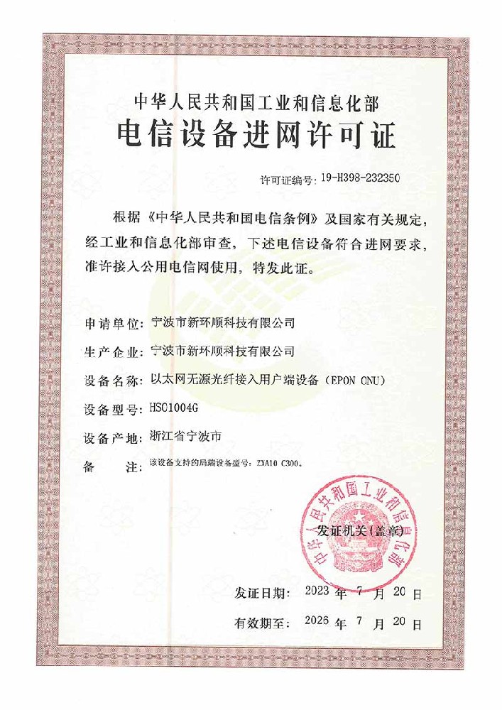 電信設(shè)備進網(wǎng)許可證
